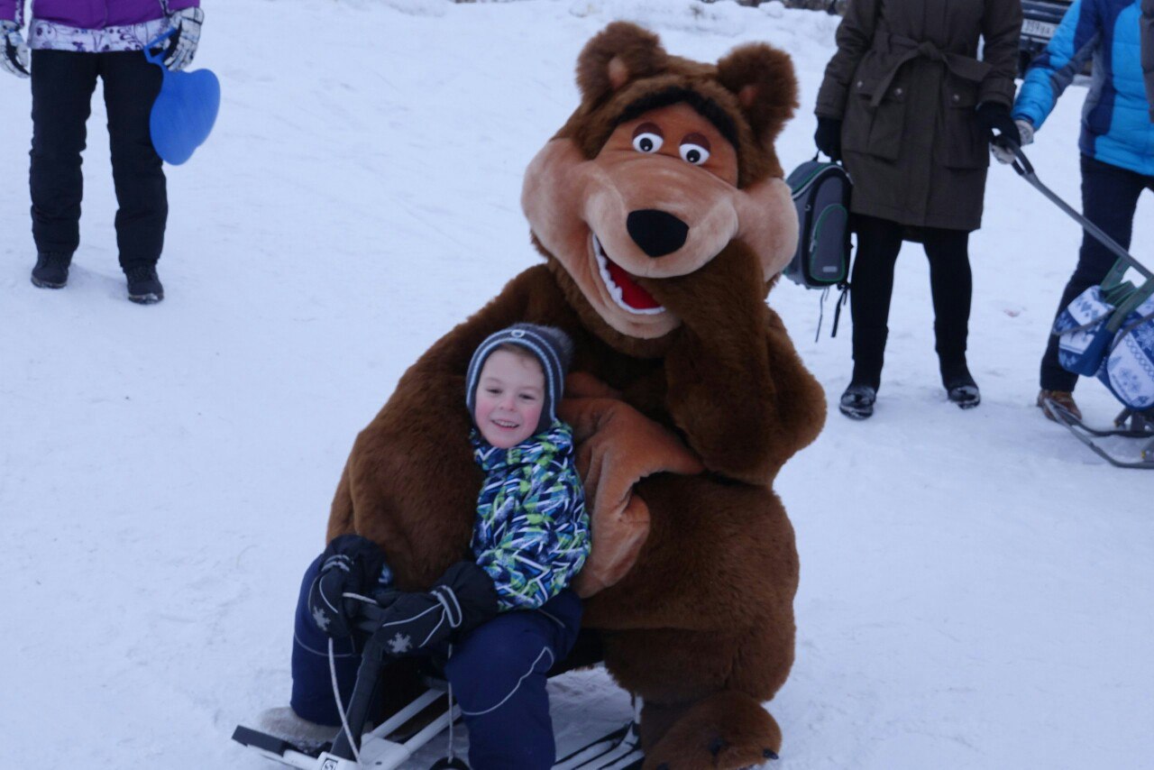 Было предложено катание с горы на ватрушках и санках, катание на лошадках-мезенках, веселые игры, конкурсы.